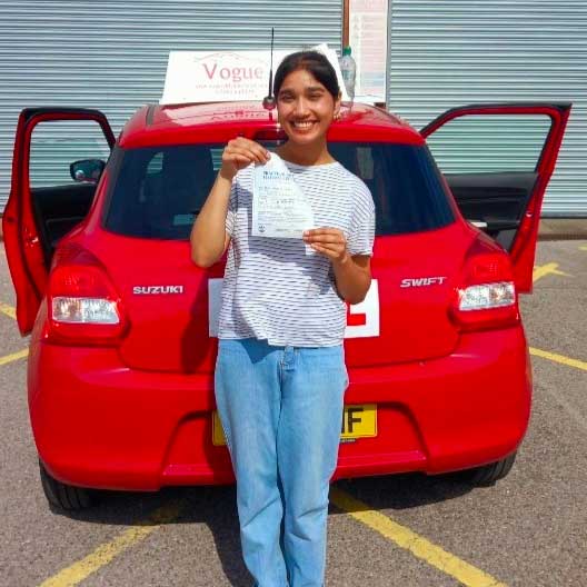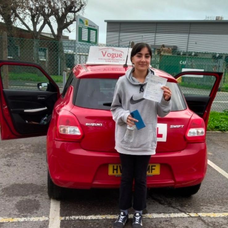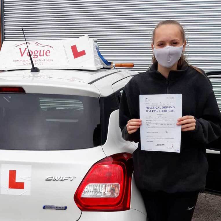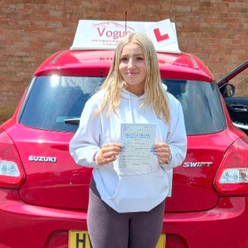 “Vogue Driving School helped me pass my test first time and filled me with great confidence within my driving and really helped me prepare for my test." - Olivia